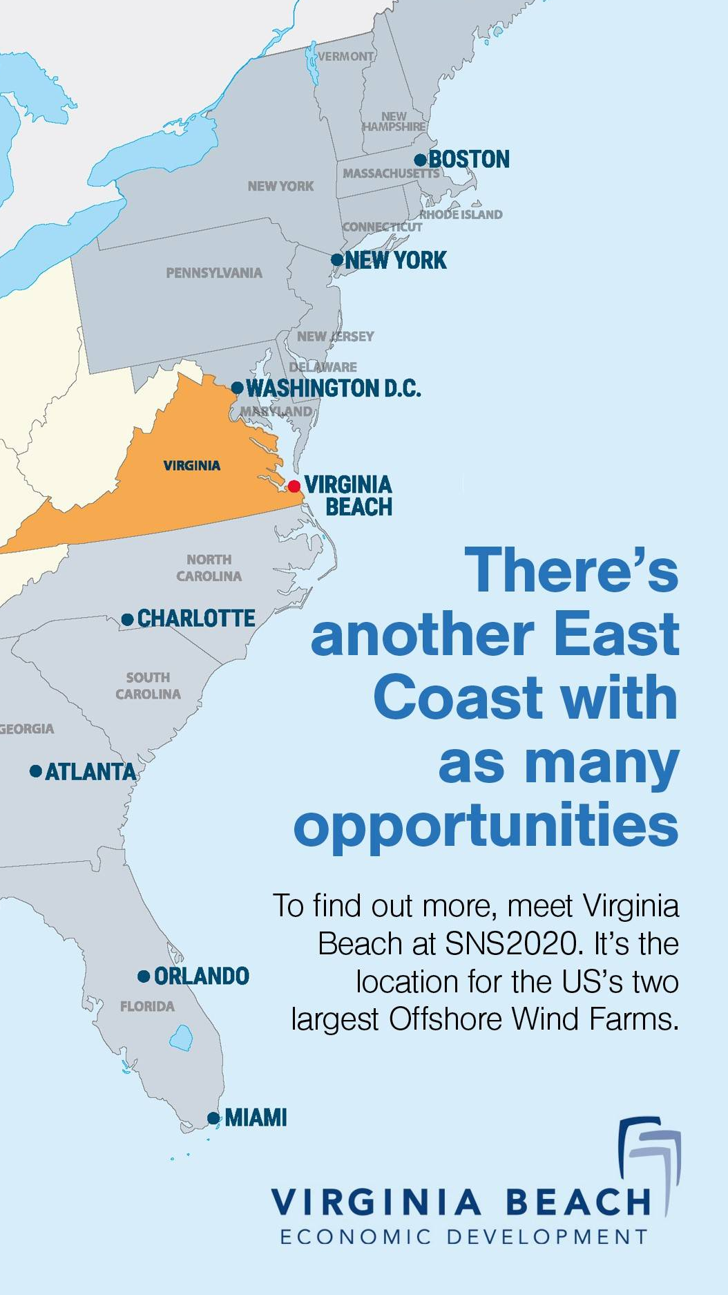 There are many hundreds of opportunities for British companies and the Economic Development team at the City of Virginia Beach is ready to assist firms who are pursuing US offshore wind contracts. They can help you set up operations, partner with local companies and find services like recruiters, training, banking and logistics.